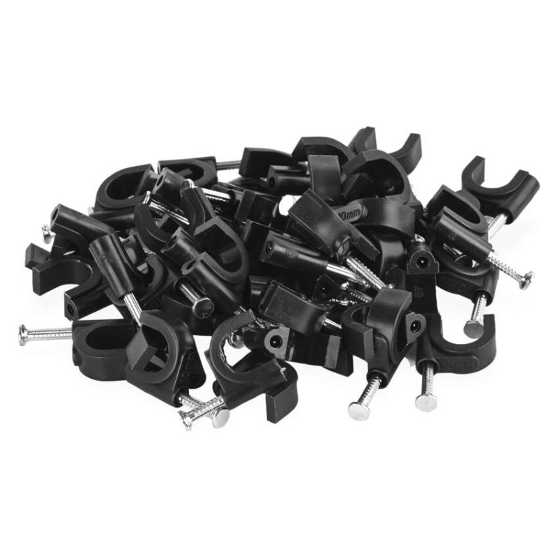 prodejní obal: 50 ks, sáček|produkt: příchytka kabelová s hřebíkem|průměr kabelu: 10 mm|rozměr: 14 × 17 × 7 mm